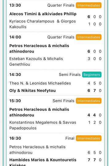 Στην κατηγορία Beginners, ο τελικός είχε ξεκάθαρη σφραγίδα. Οι Παπαδόπουλος και Τίμινη επέβαλαν από νωρίς τον ρυθμό τους απέναντι στους Νεοφύτου, δείχνοντας μεγαλύτερη σταθερότητα στις επιστροφές και καλύτερη χημεία στις κινήσεις ψηλά στο νετ. Με δύο ίδια σετ, πήραν τη νίκη με 2-0 και 4-1, 4-1, «κλείδωσαν» τον τίτλο με επαγγελματική σοβαρότητα, αξιοποιώντας σχεδόν κάθε λάθος των αντιπάλων και στέλνοντας σαφές μήνυμα ότι θα έχουν πρωταγωνιστικό ρόλο από εδώ και πέρα.