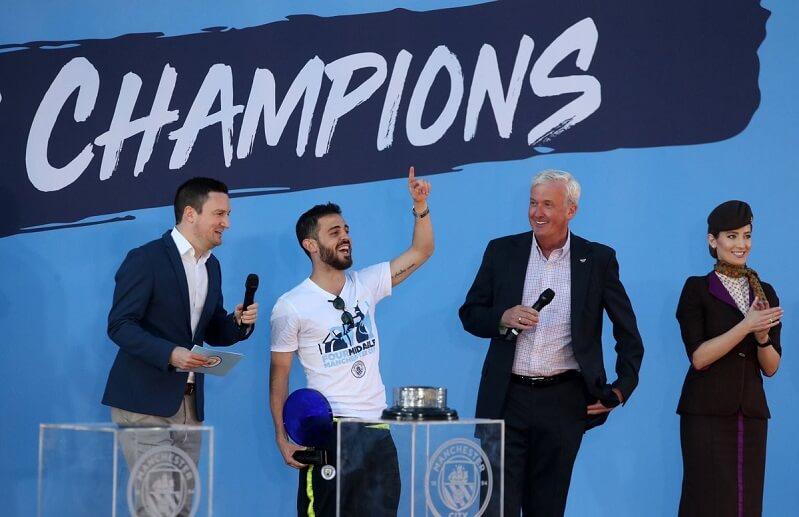 «Σας ευχαριστώ όλους πάρα πολύ. Ο τρόπος που μας δώσατε ώθηση φέτος τα έκανε όλα πραγματικότητα για μας. Χωρίς εσάς, δεν θα ήταν δυνατά. Την επόμενη σεζόν θα επιστρέψουμε, προσπαθώντας να σας δώσουμε περισσότερους τίτλους, να προσπαθήσουμε και για ευρωπαϊκά τρόπαια επίσης – αυτό είναι που μας λείπει. Ας το κυνηγήσουμε», είπε μέσω μικροφώνου στον κόσμο της ομάδας του ο σταρ των «Πολιτών».