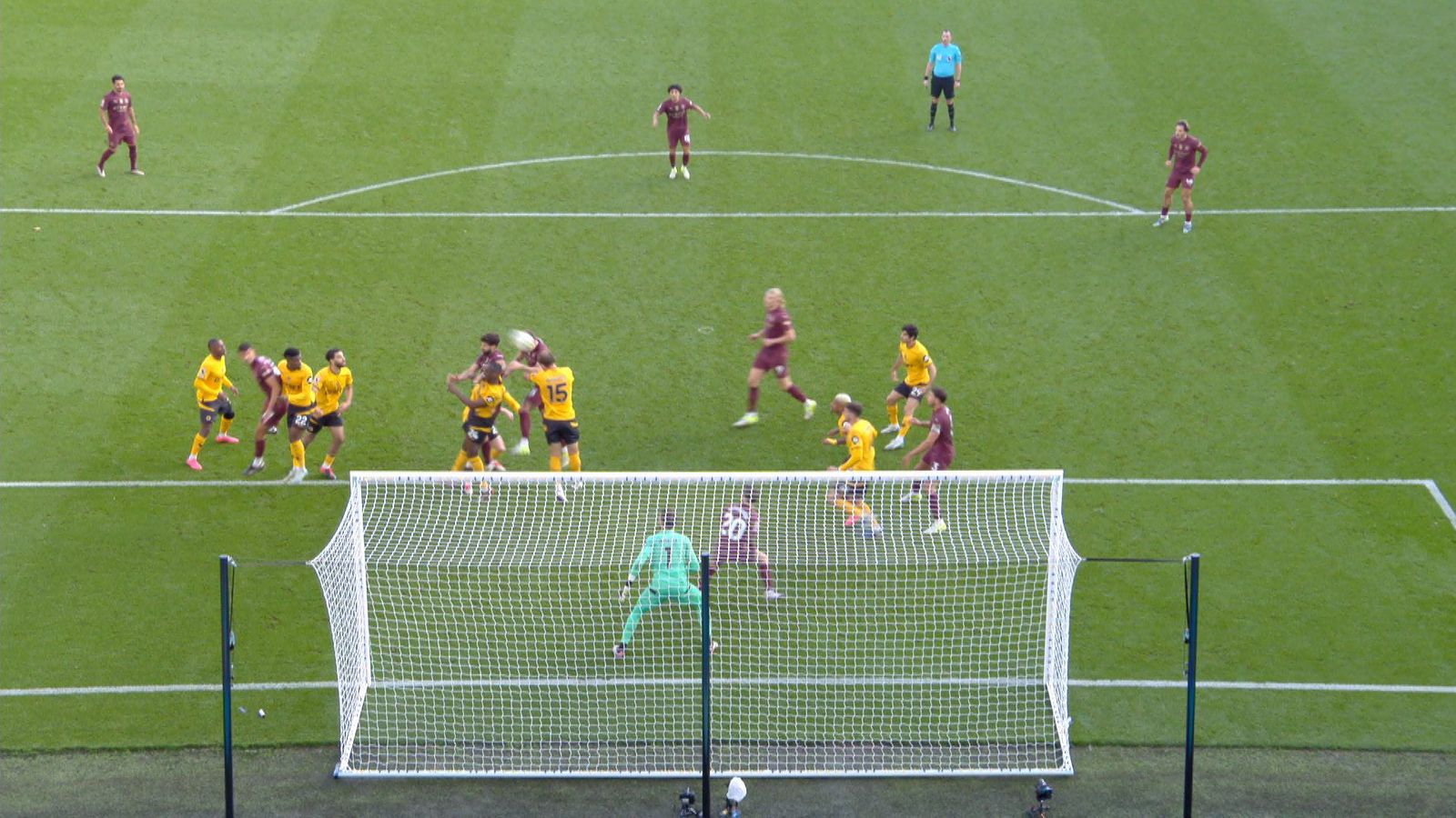 Τότε, ο Μπερνάρντο Σίλβα ήταν ακριβώς μπροστά στον πορτιέρε της Γουλβς. Και πάλι όμως, δεν εμπόδιζε σε τίποτα το οπτικό του πεδίο, στο σημείο από το οποίο σηκώθηκε ο Στόουνς να πάρει την κεφαλιά.