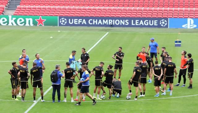 Με προπόνηση στη μεγαλοπρεπή «Γιόχαν Κρόιφ Αρένα», ο ΑΠΟΕΛ ολοκληρώνει την προετοιμασία του για τον αυριανό (28/8) επαναληπτικό κόντρα στον Άγιαξ για τα πλέι οφ του Γιουρόπα Λιγκ.