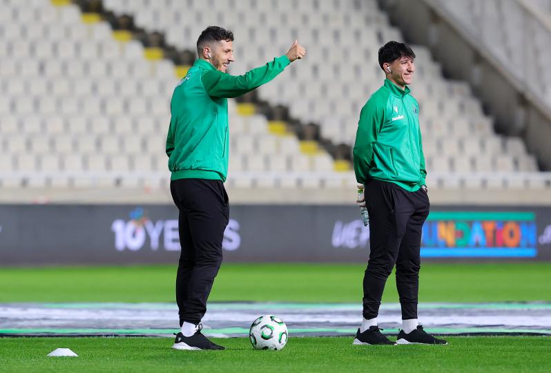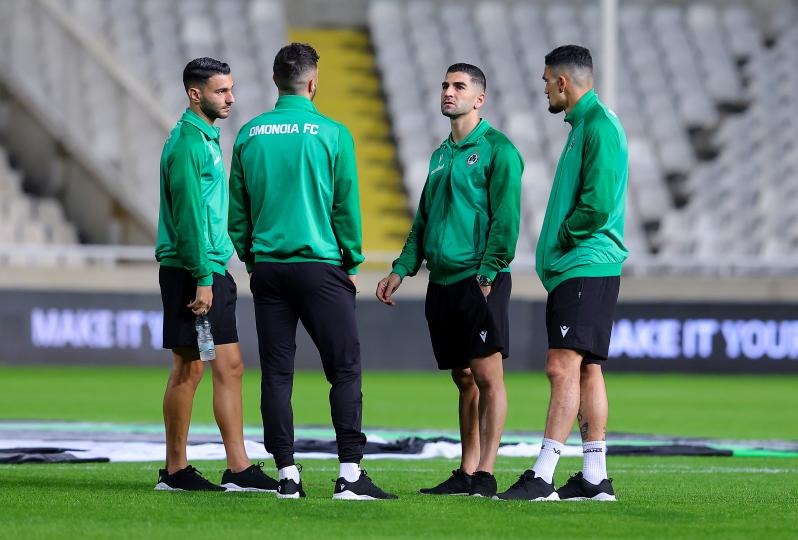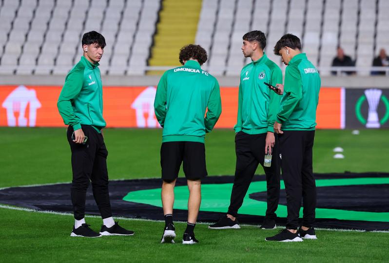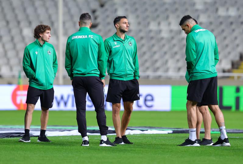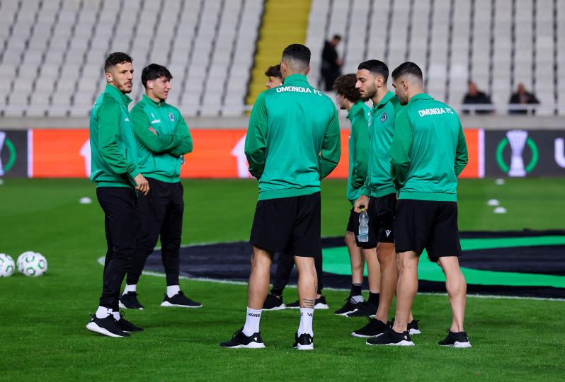 Πηγαδάκια ανάμεσα στους ποδοσφαιριστές της Ομόνοιας, στον αγωνιστικό χώρο του ΓΣΠ, πριν τον Ευρωπαϊκό αγώνα με την Ντιναμό Κιέβου, για την 4η αγωνιστική της League Phase του Conference League. Οι πράσινοι, θα ψάξουν τη πρώτη νίκη στην κύρια φάση της διοργάνωσης, έτσι ώστε να έχουν πιθανότητες για πρόκριση στην επόμενη φάση.