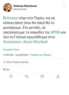 Ο Ανώτατος Εκτελεστικός Διευθυντής της Cyta, Αντρέας Νεοκλέους, καλωσόρισε στα κανάλια της Cytavision τον Μέσι που πήρε μεταγραφή στην Παρί και στο Γαλλικό πρωτάθλημα.