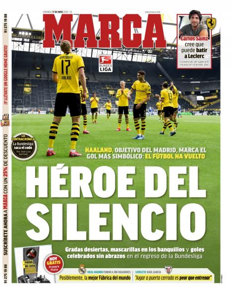Στο πρωτοσέλιδο της ισπανικής εφημερίδας «Marca» αναφέρεται η εμφάνιση του Νορβηγού επιθετικού η περίεργη ατμόσφαιρα με τις άδειες κερκίδες που διεξήχθησαν οι αναμετρήσεις.