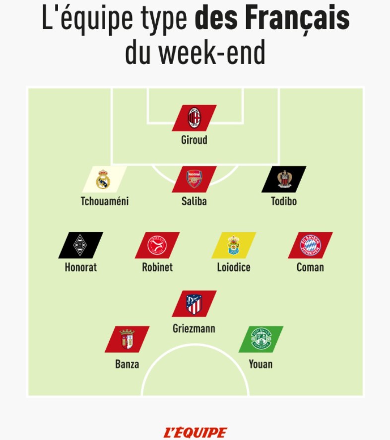 Η εβδομάδα που πέρασε δεν ήταν διαφορετική για τους συντάκτες της γαλλικής εφημερίδας, που ξεχώρισαν παίκτες όπως ο Αντουάν Γκριεζμάν της Ατλέτικο, ο Κινγκσλέ Κομάν της Μπάγερν, ο Ορελιέν Τσουαμενί της Ρεάλ, ο Ενζό Λουαοντίς της Λας Πάλμας και ο Ολιβιέ Ζιρού της Μίλαν.