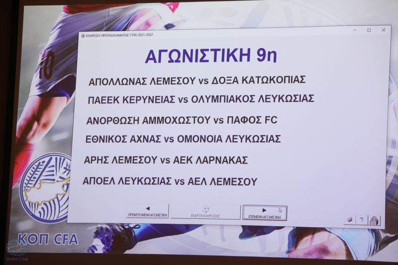 Με δύο αναμετρήσεις ανοίγει σήμερα η αυλαία της ένατης αγωνιστικής του Πρωταθλήματος Cyta και μετά την ολοκλήρωση της την Κυριακή, θα ακολουθήσει διακοπή λόγω των υποχρεώσεων των Εθνικών μας ομάδων.