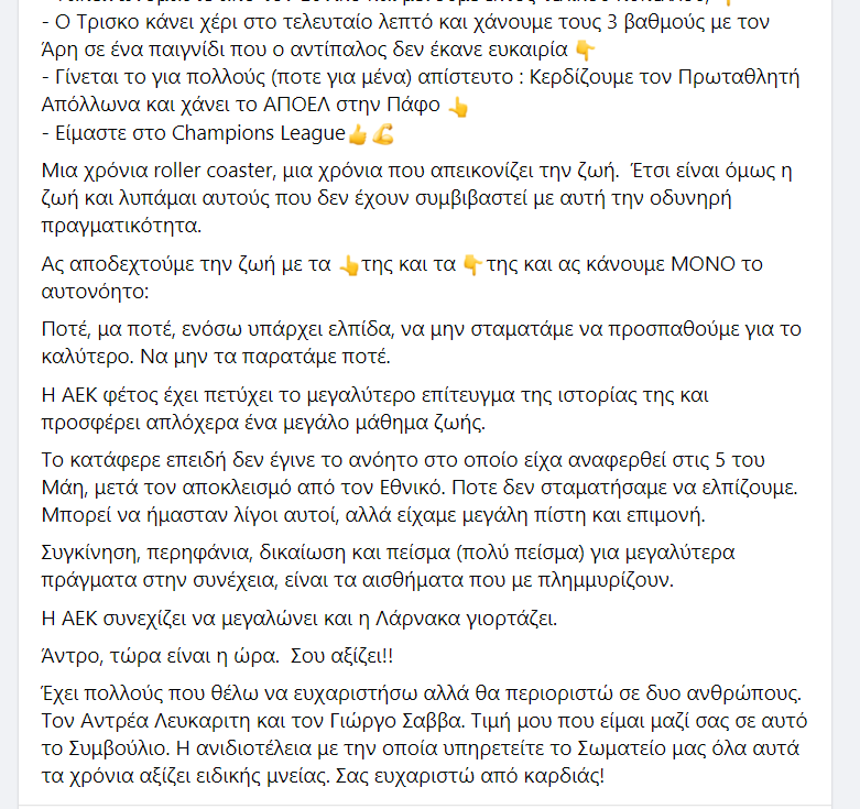 Ο Ιωσήφ Φράγκος, μέλος της διοίκησης της ΑΕΚ, πραγματοποίησε τον απολογισμό της χρονιάς με τα πάνω και τα κάτω της.