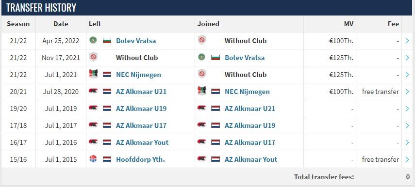 Τελευταίος του σταθμός ήταν στη Βουλγαρία και στην Μπότεβ Βράτσα, ενώ άρχισε τη καριέρα του από τις ακαδημίες της ΑΖ Άλκμααρ και ακολούθως αγωνίστηκε στην Ναϊμέγκεν.
