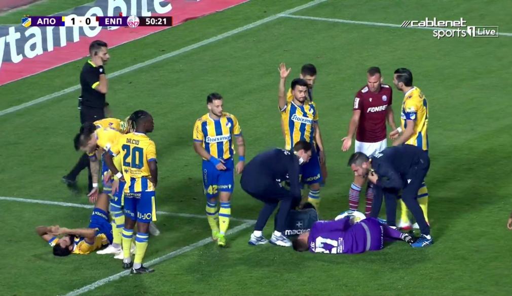 Στα αρχικά στάδια του β' ημιχρόνου, μετά από γέμισμα στα καρέ του ΑΠΟΕΛ, συγκρούστηκαν οι Μπέλετς και Τσεπάκ.