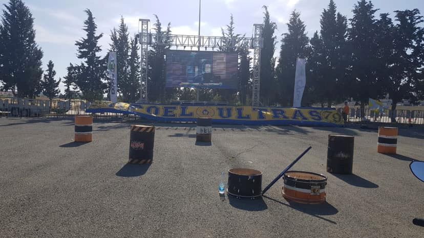 Όπως έγινε γνωστό προ ημερών στο σημερινό κρίσιμο ντέρμπι ΑΠΟΕΛ-Απόλλων, οι οργανωμένοι φίλοι του ΑΠΟΕΛ θα παρακολουθήσουν τον αγώνα από γιγαντοοθόνη, η οποία στήθηκε στο πίσω μέρος του νότιου πετάλου, με το πάρκινγκ να μετατρέπεται σε... συναυλία.