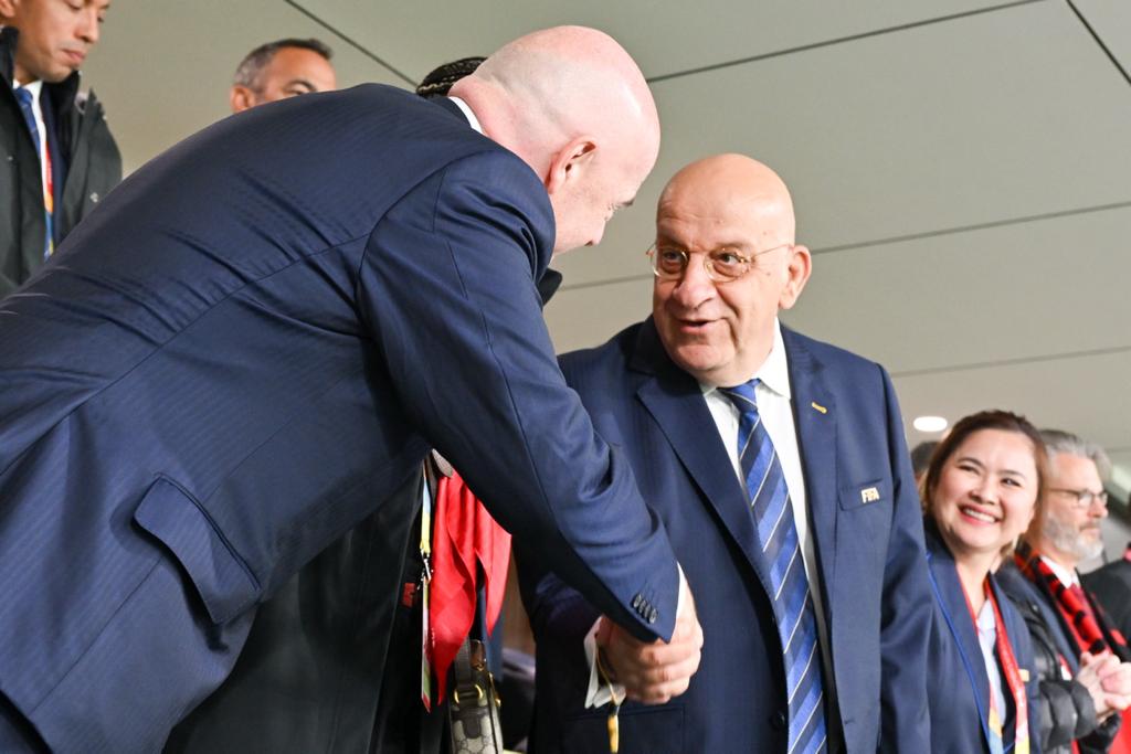 Στη φωτογραφία ο Πρόεδρος της ΚΟΠ μαζί με τον Πρόεδρο της FIFA Τζάνι Ινφαντίνο.