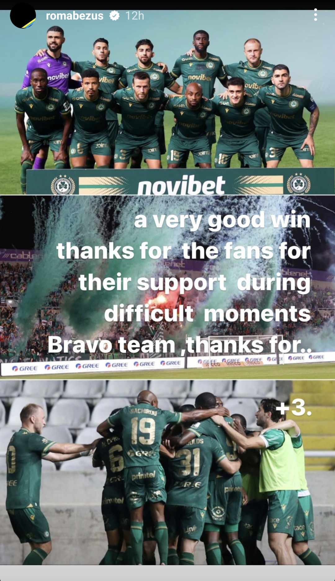 «Σημαντική νίκη, ευχαριστούμε τον κόσμο για την στήριξη του, ιδιαίτερα στις δύσκολες μας στιγμές. Μπράβο ομάδα!» το σχόλιο του Μπεζούς μέσα από στόρι που ανέβασε στον προσωπικό του λογαριασμό στο Instagram.