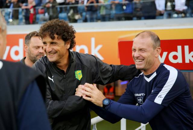 Λίγο πριν τη σέντρα οι δύο προπονητές είχαν θερμό εναγκαλιασμό και τα είπαν σε ευχάριστο κλίμα. Όπως μπορείτε να δείτε στην πιο κάτω φωτογραφία, οι Θόρουπ (Γάνδη) και Ιδιάκεθ (ΑΕΚ) έδωσαν τα χέρια και στη συνέχεια κάθισαν στους πάγκους τους για τη δική τους ''μάχη'' που θα κρίνει πολλά.