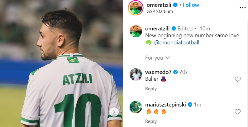 Δεν έκρυψε τον ενθουσιασμό του ο ποδοσφαιριστής της Ομόνοιας, Ομέρ Ατζίλι, ο οποίος έκανε και την πρώτη του δημοσίευση στον προσωπικό του λογαριασμό στο Instagram.