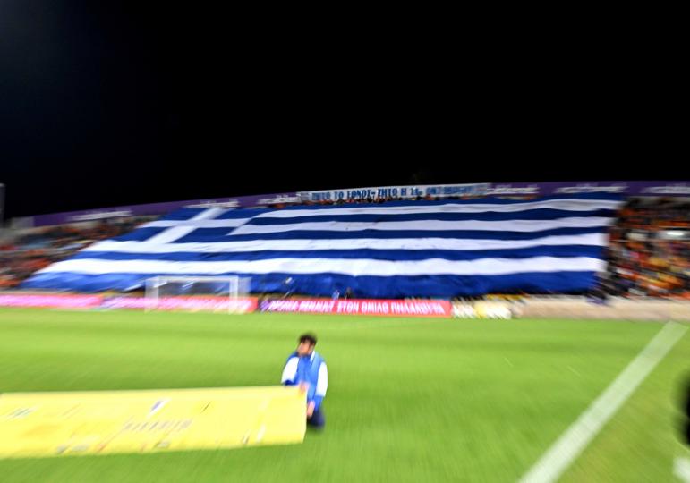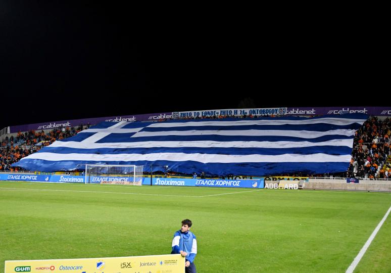 Με μια τεράστια Ελληνική σημαία που απλώθηκε στο νότιο πέταλο τίμησαν τη σημερινή επέτειο της 28ης Οκτωβρίου οι οργανωμένοι του ΑΠΟΕΛ.