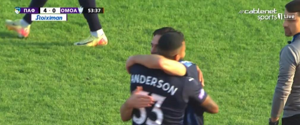 Δεν σταματάει πουθενά η Πάφος που συνέχισε να σκοράρει και στο β' ημίχρονο. Η παφιακή ομάδα έφτασε στο 4-0 με τον Άντερσον και μετά από ασιστ του Μπρούνο.