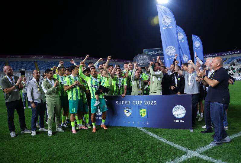 Οι ποδοσφαιριστές και η τεχνική ηγεσία της ΑΕΚ, σήκωσαν τον πρώτο τίτλο της σεζόν και το πανηγύρισαν έξαλα στον αγωνιστικό χώρο του ΓΣΠ.