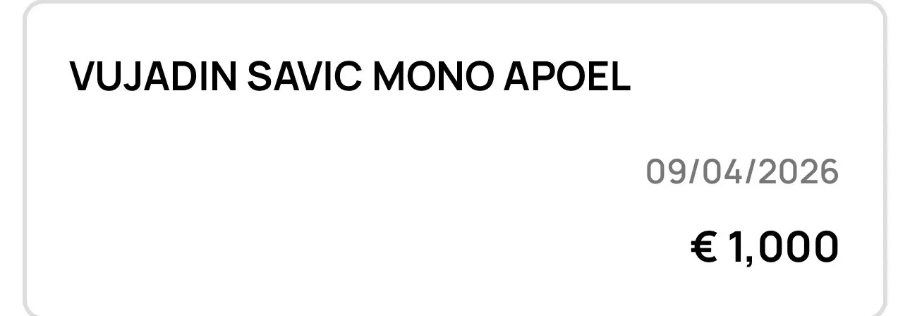 Ο Σέρβος στόπερ προχώρησ σε εισφορά €1000 και έγραψε χαρακτηριστικά: «Μόνο ΑΠΟΕΛ».