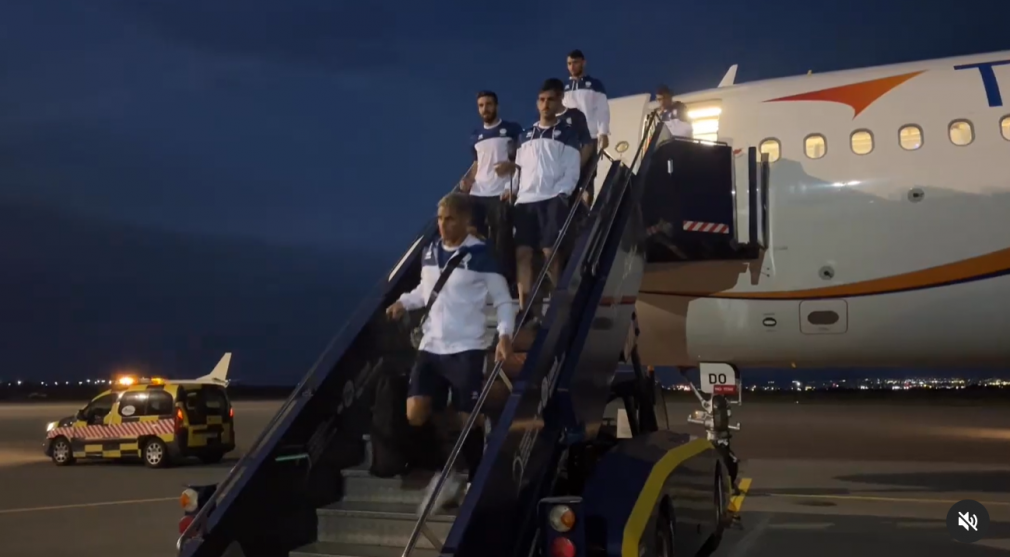 Προσγειώθηκε στο Κόσοβο όπου την Τρίτη θα αντιμετωπίσει την Εθνική ομάδα του Κοσόβου με στόχο τη νίκη και την παραμονή μας στην Γ’ κατηγορία.