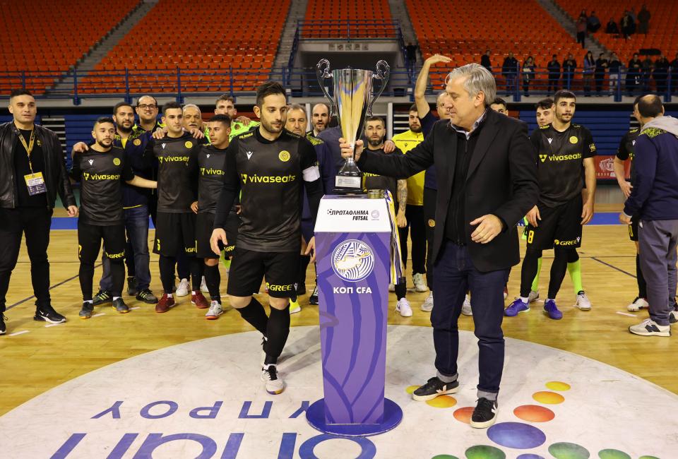 Για τον πρώτο τίτλο στο φούτσαλ: «Μετά από 14 χρόνια λειτουργία του τμήματος ο πρώτος τίτλος είναι γεγονός. Ειλικρινά δεν μπορώ να περιγράψω τα συναισθήματα που νιώσαμε όταν πανηγυρίσαμε στο Νίκος Σολωμονίδης».