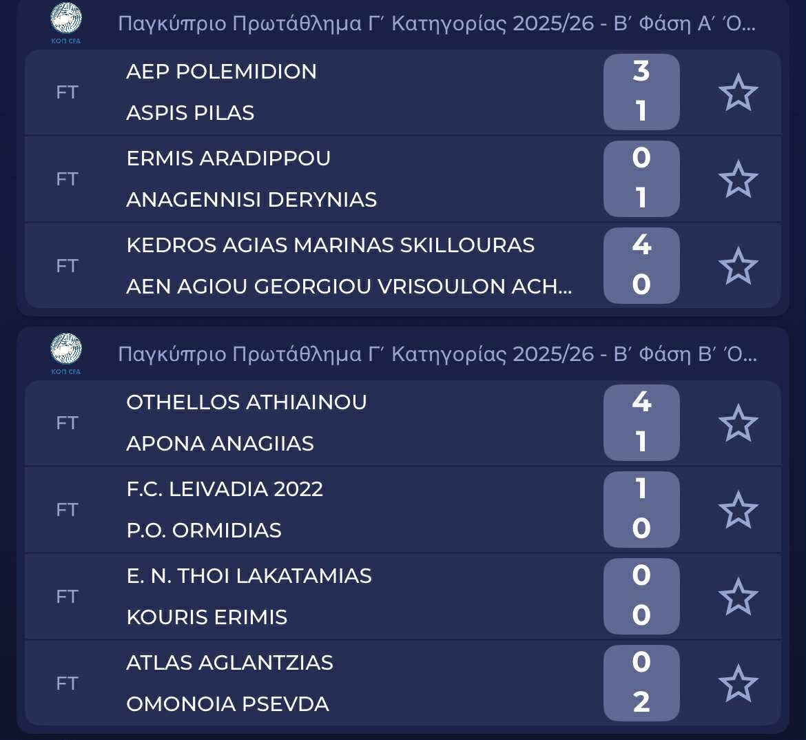 Γ' Κατηγορία: Τα σημερινά αποτελέσματα Γ' ΚΑΤΗΓΟΡΙΑ 31.01.202617:10 Δείτε αναλυτικά όλα τα σημερινά αποτελέσματα της 3ης φάσης του Πρωταθλήματος Γ' Κατηγορίας σε α' και β' όμιλο. 45665661-3247-4a9c-a025-78136f424ef945.jpg