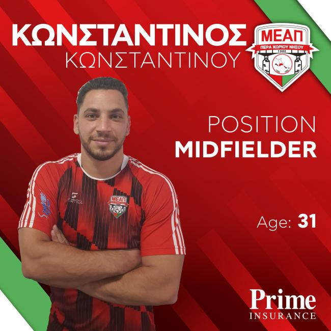 Την ανανέωση της συνεργασία της με τον Κωνσταντίνο Κωνσταντίνου ανακοίνωσε η ΜΕΑΠ. Μετά την αποχώρηση του αρχηγού Βαγγέλη Καλλικά ο Κωνσταντίνου είναι ο μακροβιότερος ποδοσφαιριστής σε παρουσίες στην ομάδα της ΜΕΑΠ και φέτος συμπληρώνει δέκα χρόνια.